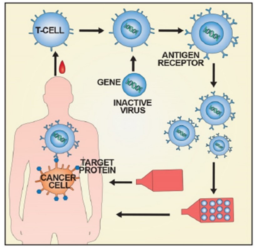 식약처에 따르면 키메라 항원 수용체 T세포는 면역세포(T세포)의 수용체 부위와 암세포 표면의 특징적인 항원 인식 부위를 융합한 유전자를 환자의 T세포에 도입한 것으로 암세포의 표면 항원을 특이적으로 인지해 공격하는 기능을 갖는다.