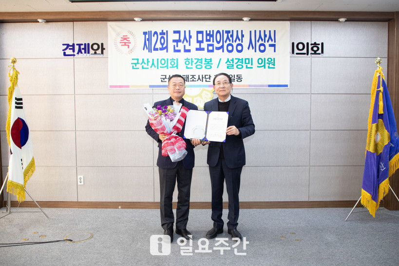 [일요주간 = 김성환 기자] 군산시 시민단체인 ‘군산 부패 조사단’은 지난 5일 군산시의회 한경봉 시의원, 설경민 시의원에게 ‘2022년 모범 우수 의정 상’을 수여했다.