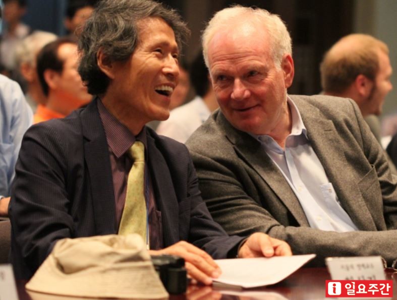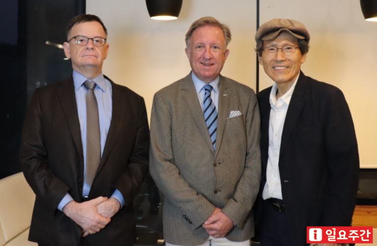▲ 러시아 출신 한반도 전문가인 ‘안드레이 란코프’ ‘붉은 왕조’ 저자인 ‘파스칼 다예즈 뷔르종’과 함께(왼쪽부터) |