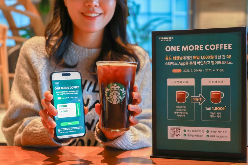 ▲ 스타벅스, 골드 회원 대상 맞춤형 혜택 '원 모어 커피' 시범 운영. (사진=스타벅스 코리아 제공) |