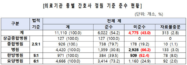 -환자 안전·간호 인력 수급난 해소 등 1인 당 환자수 법제화 필요