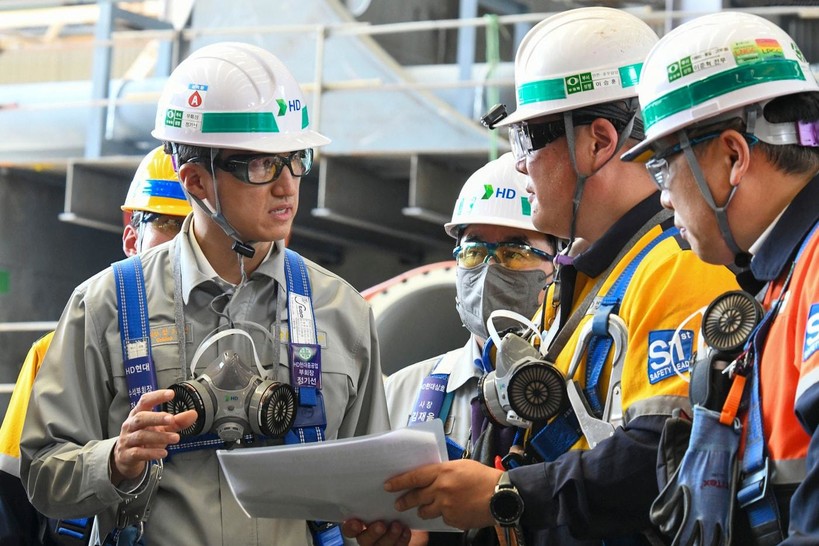 | ▲ HD현대 정기선 수석부회장이 4일 HD현대삼호 조선소를 찾아 현장의 안전을 점검했다. (사진=HD현대 제공) |