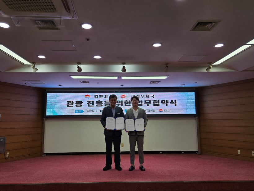 [일요주간=최부건 기자] 김천시와 김천우체국은 지난 10일 김천시청에서 지역 관광진흥을 위한 업무협약(MOU)을 체결했다고 밝혔다. 이날 협약식에는 윤상영 김천시 경제관광국장과 김상호 김천우체국장을 비롯한 양 기관 관계자들이 참석해 관광 활성화 및 상호 협력 방안을 논의했다.