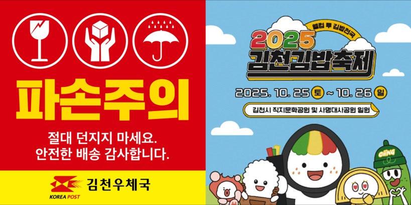 이번 협약은 단순 관광 지원을 넘어 행정 전 분야에서의 시정 홍보 확대라는 점에서 의미가 크다. 양 기관은 신규 사업으로 우체국 택배 박스에 축제 홍보 스티커를 부착하는 방안을 추진한다. 김천 특산물인 포도 택배 물량이 집중되는 9월부터, 우체국 택배 발송 시 사용되는 ‘파손주의’ 스티커에 김천김밥축제 홍보 이미지를 함께 삽입, 전국으로 발송할 예정이다.