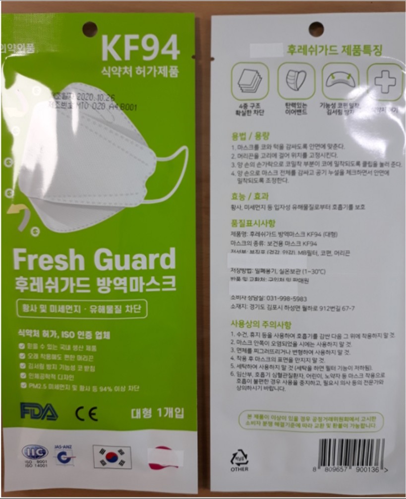 식약처 관계자는 “이번 사건은 지난해 10월 허가받지 않은 공장에서 마스크를 대량 생산·납품한 대표가 구속된 C업체의 유통 경로를 추적한 결과”라며 “앞으로도 국민 건강을 위협하는 가짜 마스크를 불법 제조·판매하는 위반업체에 대해 엄중히 수사할 것”이라고 말했다.