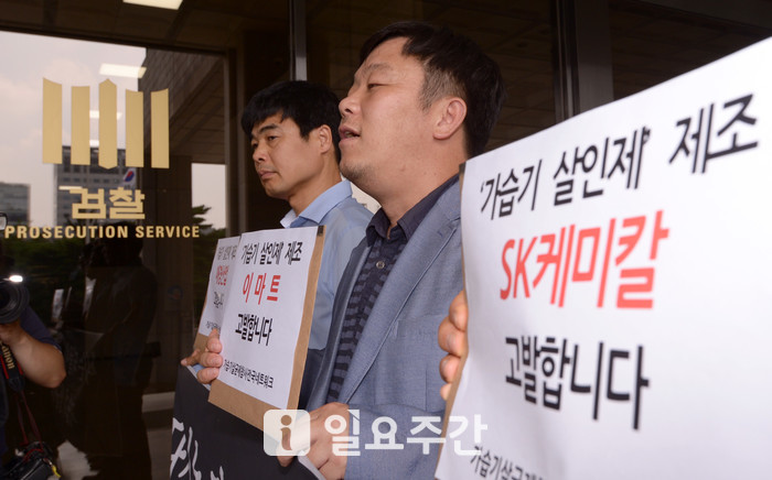 ▲ 지난 2016년 8월 환경운동연합과 가습기살균제참사전국네트워크 등 시민사회단체는 가습기살균제 원료 물질을 개발하고 유통시킨 SK케미칼과 가습기 살균제 완제품을 제조·유통시킨 이마트 등을 형사 고발했다.사진은 당시 이들 단체가 서울 서초구 서울중앙지검에서 기자회견을 하고 있는 모습. |