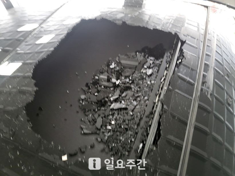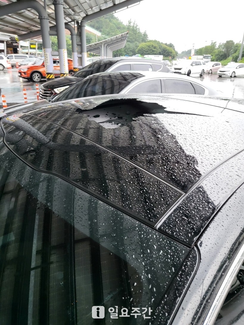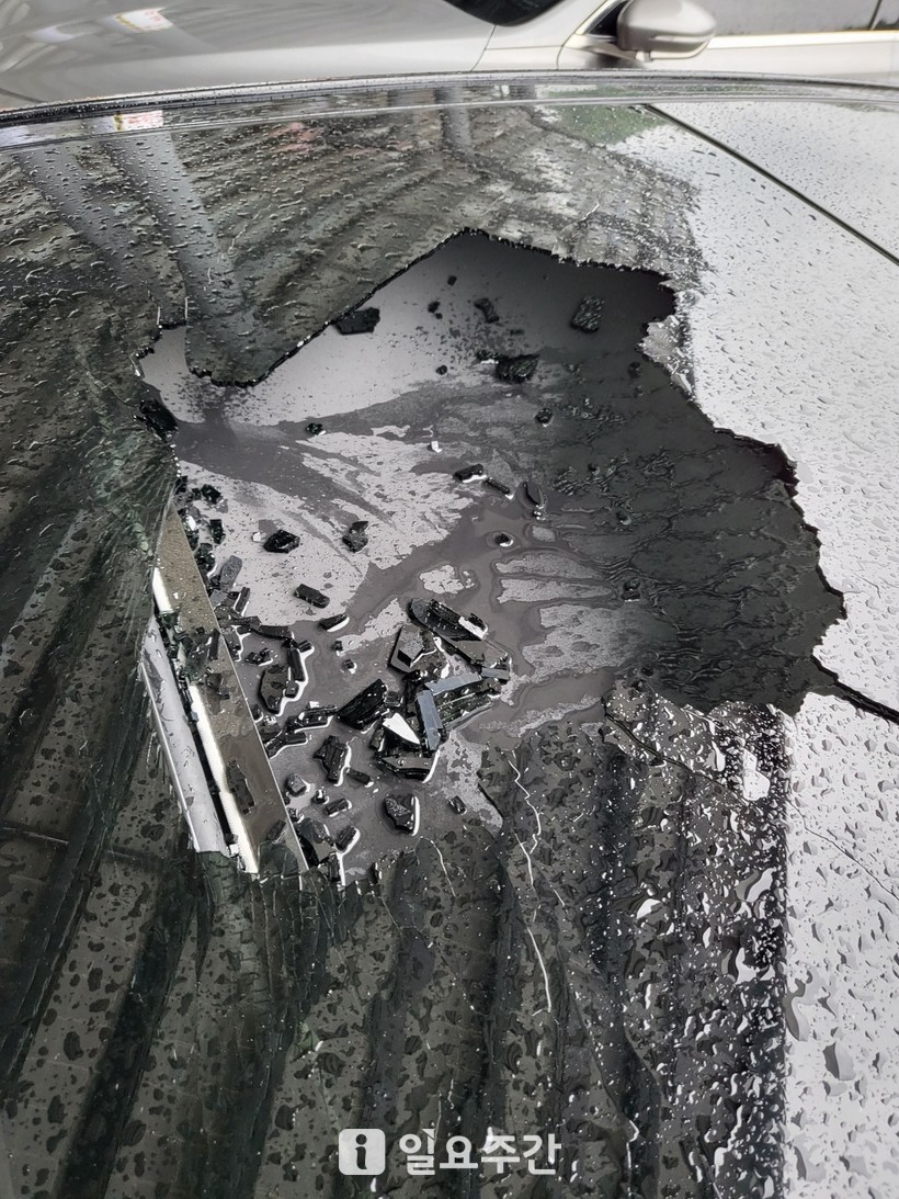 A 씨는 “사고 당시 비가 많이 내려 교통이 정체되면서 30km 정도로 서행 중이었는데, 갑자기 엄청난 폭발음이 나면서 선루프가 파손됐다”며 “저속으로 운행 중에 이 같은 사고가 발생했다는 것은 (선루프) 결함 말고는 설명할 수 없다”고 주장했다.