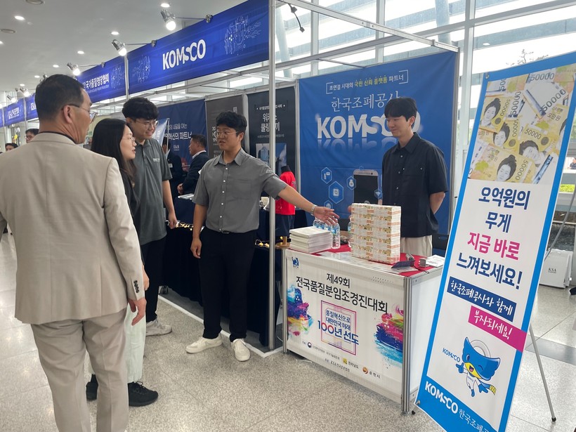 조폐공사는 올해 전국대회에서 홍보부스도 운영했다. 공사 특수압인 기술이 적용 된 기념주화 및 위변조방지기술을 활용한 브랜드 보호 제품 전시뿐만 아니라 ‘오억 원 묶음 들어보기’ 체험행사를 통해 대회 참가자들에게 경쟁의 스트레스에서 잠시나마 벗어날 수 있도록 즐거움을 제공하고 공사의 보안기술을 홍보할 수 있는 뜻깊은 자리가 되었다.