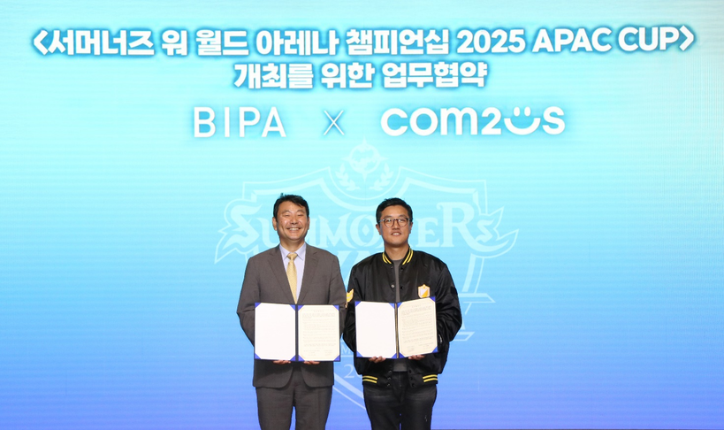 컴투스(대표 남재관)는 지난 17일 (재)부산정보산업진흥원(원장 김태열)과 ‘SWC2025’ 아시아퍼시픽 컵 개최와 관련한 업무 협약(MOU)을 체결했다고 밝혔다. 협약식은 부산이스포츠경기장에서 진행됐으며, 양 기관은 대회의 원활한 운영과 지역 e스포츠 생태계 조성을 위한 다양한 협력 방안을 논의했다.