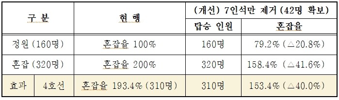 ▲ 객실 의자 제거 시 기대효과(’23.3분기 기준) (표=서울시) |