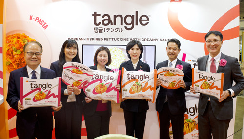 슈퍼마켓 트레이드쇼는 매년 일본 전역에서 수만여명의 바이어가 참석하는 올해 전시회에서 삼양식품은 지난해 수출용으로 개발한 프리미엄 건면 브랜드 ‘탱글’을 선보이고 '탱글 불고기크림파스타'와 '탱글 김치로제파스타' 2종을 소개했다.