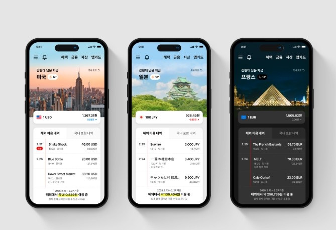 현대카드의 ‘해외모드’는 회원이 소지한 스마트폰의 시간대 정보를 기반으로 전 세계 206개 국가에서 여행 관련 맞춤 기능을 제공한다. 날씨, 환율, 환율 계산기 등 여행 필수 정보를 실시간 확인할 수 있으며, 현대카드뿐만 아니라 비자·아메리칸 익스프레스 등 해외 브랜드 카드 혜택도 바로 적용된다.