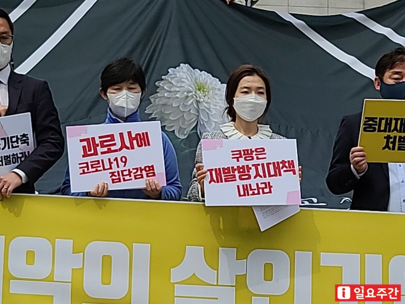 산재사망대책마련 공동 캠페인단은 "지난해 한국 물류서비스업에 종사하는 노동자 16명이 과로로 사망했다"고 운을 뗀 뒤 "지난 3월 11일에는 미국 뉴욕증권거래소에 상장을 하며 상장 첫날 시가총액이 100조원을 넘었다고 언론들이 앞다퉈 보도했다"며 "그러나 정작 보도되어야 할 것은 쿠팡 노동자의 사망과 열악한 노동환경이다. 쿠팡에서는 2020년에만 4명의 노동자가 사망했다"고 지적했다.