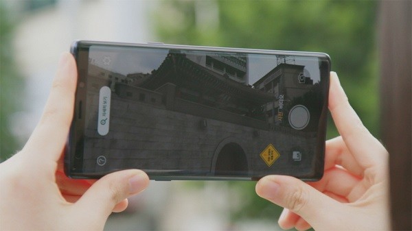 | ▲ 돈의문 증강현실 서비스를 모바일 애플리케이션으로 실행하는 모습. ⓒ문화재청 |
