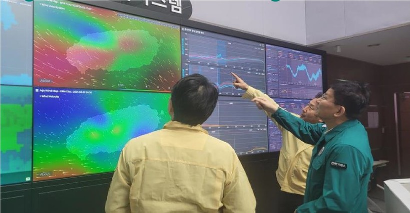 | ▲ 전력거래소, 제주본부 봄철 특별점검 현장_왼쪽에서 설명을 듣고 있는 전력거래소 정동희 이사장(사진=전력거래소) |