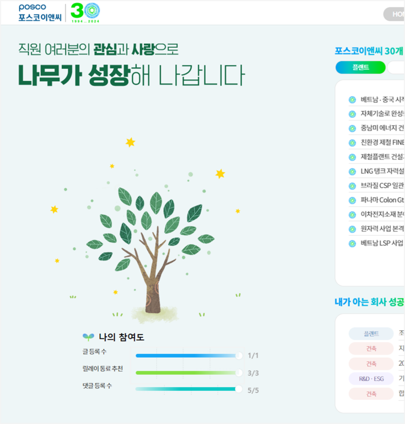 ▲포스코이앤씨 '창립 30주년 성공스토리 앱'. (사진=포스코이앤씨 제공) |