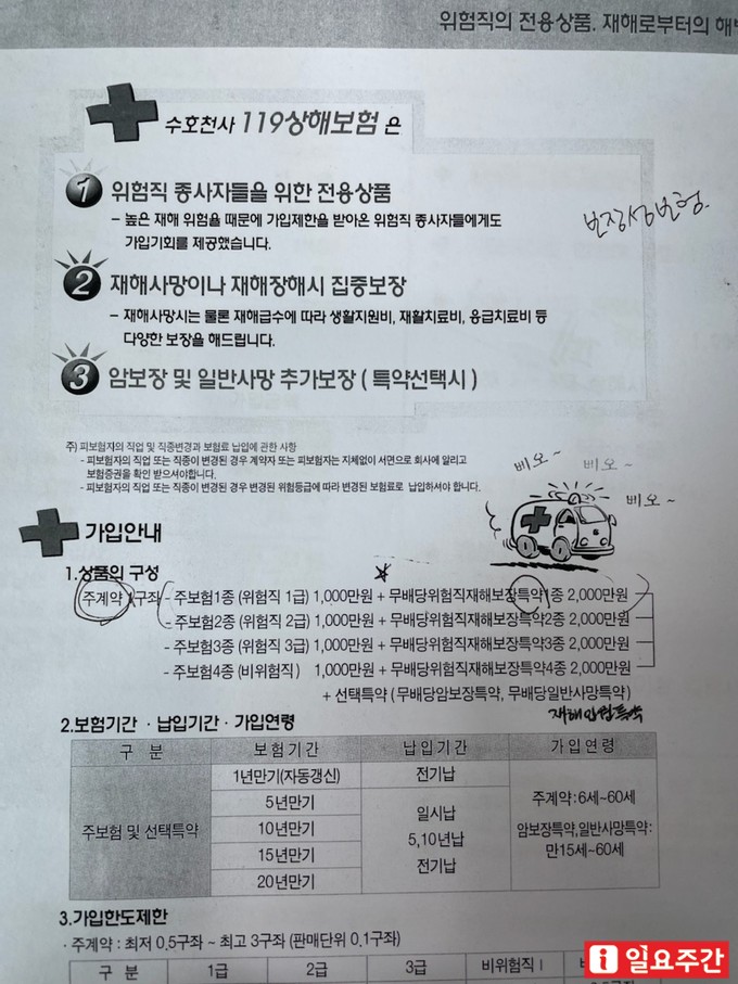 매달 납부하던 주계약 보험료가 1만 6500원에서 1만 3900원으로 변경되면서 발생한 차액 2600원은 ‘위험직재해보험보장특약(순수보장)’으로 분류돼 있었다.