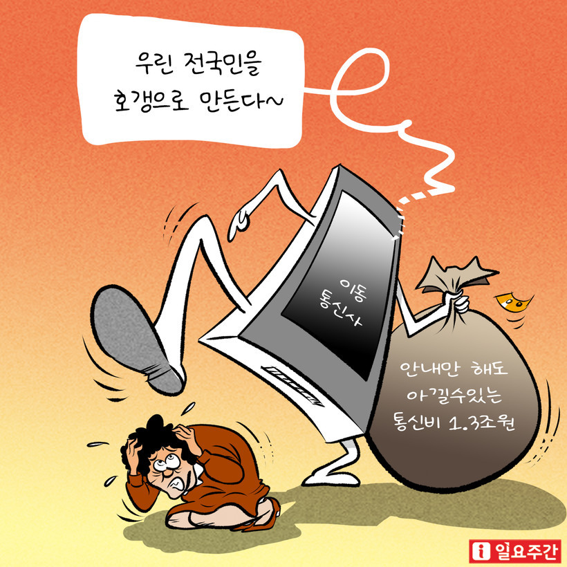[일요주간 = 노가연 기자] 통신비 연간 1조3372억원이 이동통신3사 주머니에 고스란히 들어가고 있다는 주장이 국정감사를 통해 밝혀졌다. 전국민을 상대로 호갱을 만든 셈이다.