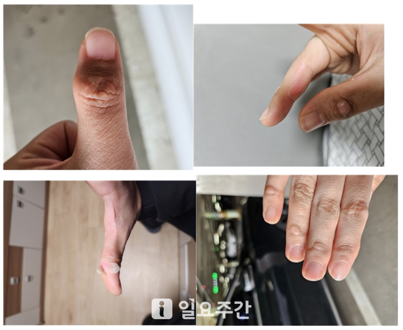 ▲ 삼성전자 기흥사업장 반도체 제조 여성 노동자들의 실제 손가락 사진. (사진=전국삼성전자 노동조합 제공) |