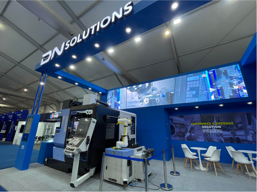 | ▲ 대한민국 국제방위산업전시회(KADEX 2024)에 마련된 DN솔루션즈 부스 전경. (사진=DN솔루션즈 제공) |