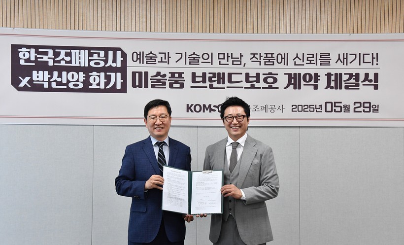 [일요주간=김영란 기자] 한국조폐공사(사장 성창훈, www.komsco.com)는 29일, 배우이자 화가로 활동 중인 박신양 작가(주식회사 씨너지인터내셔날 대표)와 미술품 및 관련 제품에 대한 브랜드보호 보안인쇄 계약을 체결했다고 밝혔다.