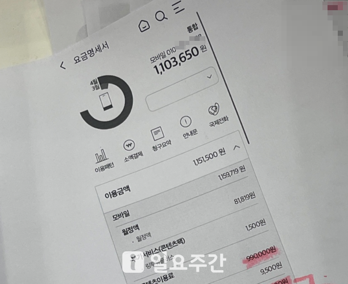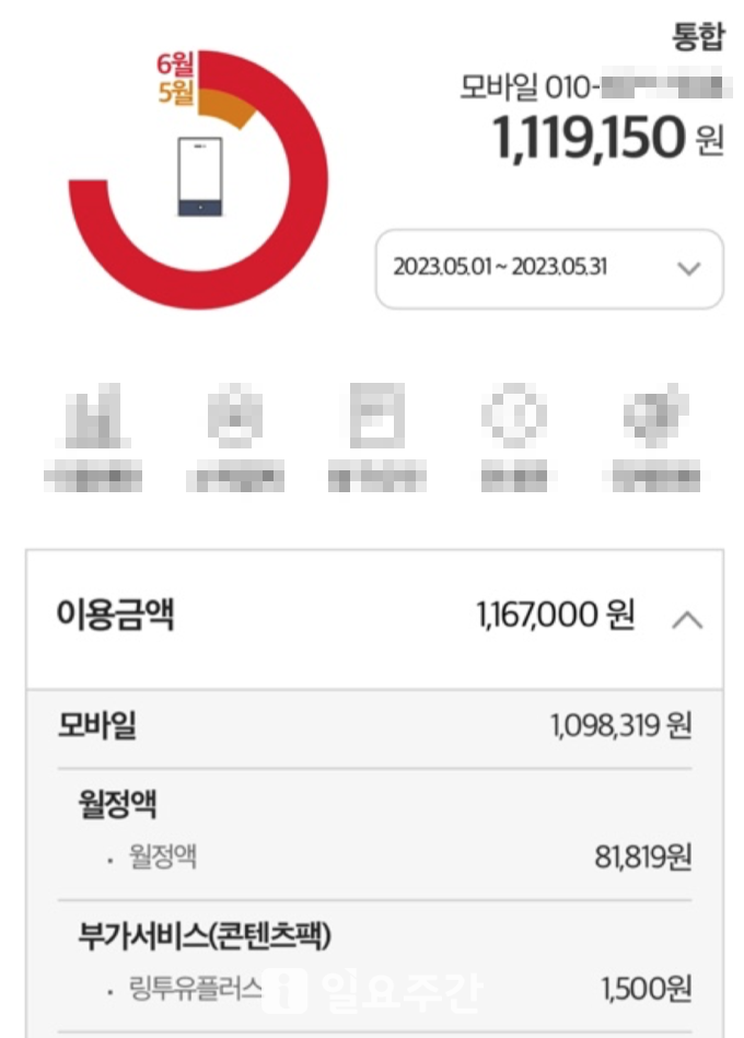 ▲ A씨에게 청구된 5월 핸드폰 청구요금.(사진=제보자 제공)
