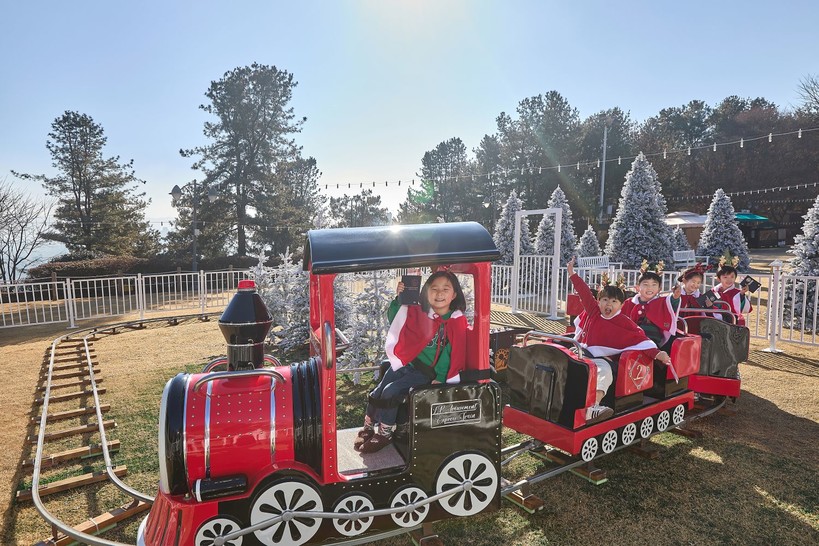 | ▲ 산타 키즈 빌리지 행사장에서 아이들이 매직 트레인에 탑승하고 있다. (사진= 워커힐 호텔앤리조트) |