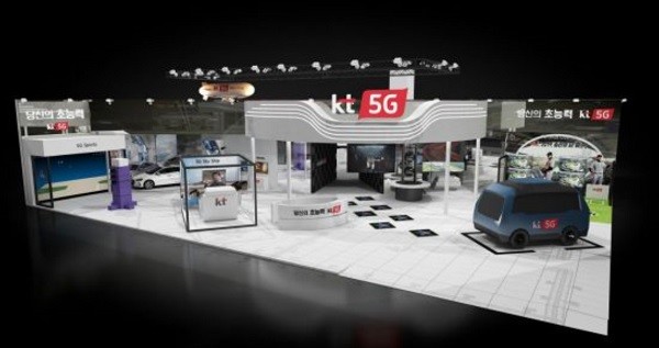 KT는 5G 단말을 이용해서 5G 기반의 기술을 선보인다. 전시관은 5G 스카이십, 5G VR 야구, 기가 라이브 티비, 기가 아이즈, 블록체인 로밍, 5G 리모트 콕핏, 5G 완전 주행 셔틀버스, 지니뮤직 5G 프리미엄관, 베베로그 등 10개의 아이템으로 이뤄졌다. KT 그룹사와 중소기업의 아이템도 선보인다.