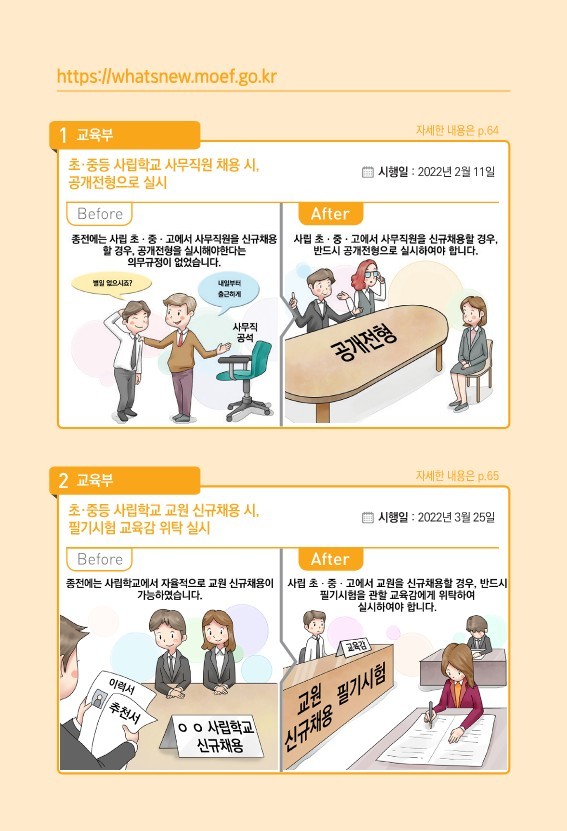 ▲초·중등 사립학교 교직원 채용절차의 공정성 제고를 위해 교원 필기시험을 교육감에 위탁(‘22.3.25.~)하고 사무직원 채용시 공개전형을 의무화(’22.2.11.~)합니다.