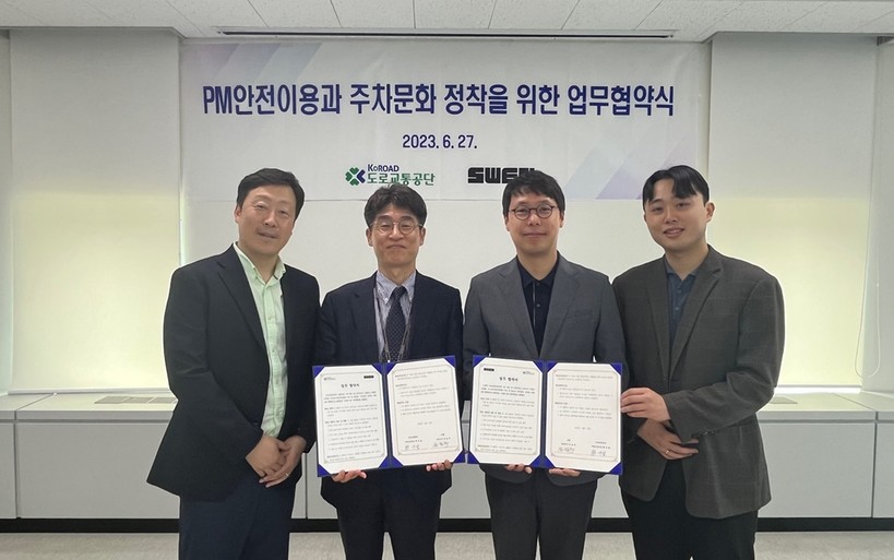 [일요주간=김영란 기자] 도로교통공단(이사장 이주민)은 스웬(대표 전범주)과 강원도 원주시 소재 공단 본부에서 「개인형 이동장치(PM) 안전이용과 주차문화 정착을 위한 업무협약」을 체결했다고 밝혔다.