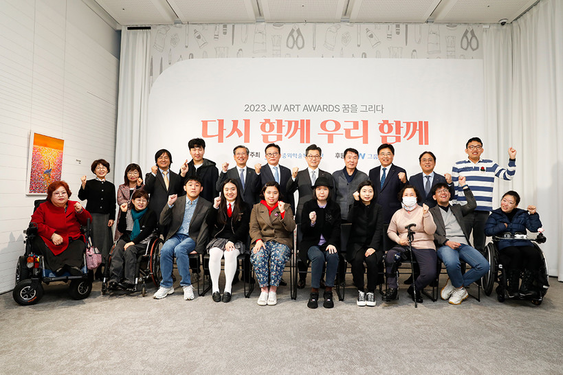 경기도 과천시 소재 JW과천사옥에서 개최된 ‘JW 아트 어워즈’는 외학술복지재단이 주최하고 JW그룹이 후원하는 행사로 장애인 예술가들에게 창작활동의 기회를 제공하기 위해 마련한 미술 공모전이다. 상금은 국내 장애인 미술전 중 최고 수준이며 지난 8년 간 총 1555건의 작품과 287명의 수상 작가를 배출했다.