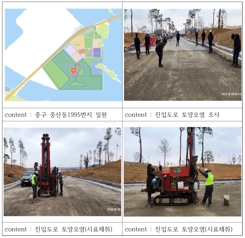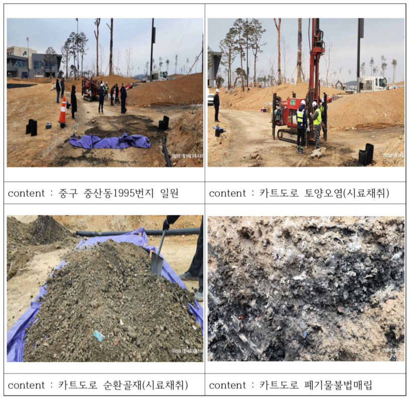 그러면서 "1월 16일 경제청과 중구청에서 토양 오염이 없다고 발표한 부분은 시료 채취에 문제가 있다. 저희가 (전문기관을 통해) 조사한 구역은 카트도로의 심도 1m 부분이다. 현재 폐기물이 매립돼 있던 그 위치다"며 "심도 1m 10cm~2m 토양을 조사 해야 되는데 (중구청 등이 의뢰한 조사는) 갯벌층(심도 3m~4m)을 조사했기 때문에 (1월 23일) 공문을 통해 재조사를 요구했다"고 밝혔다.