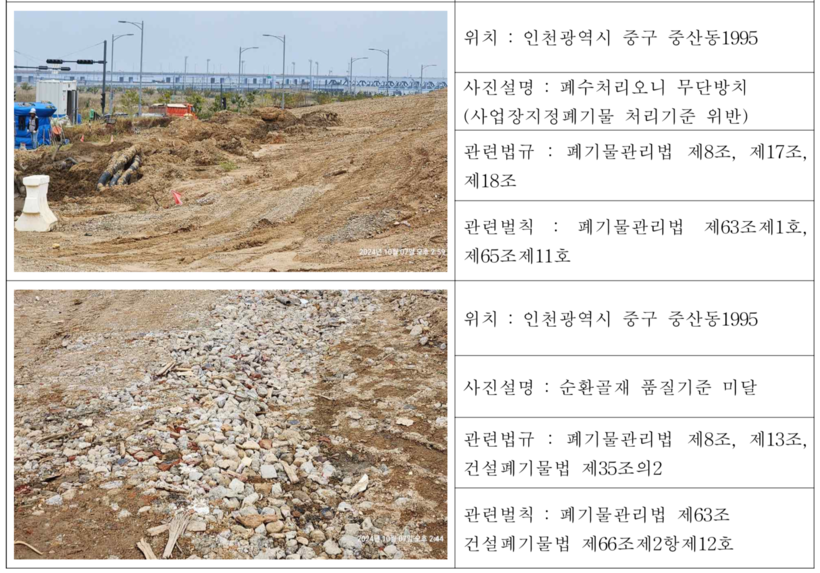 인천시와 중구청 등에 따르면 경제자유구역청, 시공사(디에스종합건설) 입회하에 지난 1월 21일 '폐기물 매립양 파악을 위한 2차 조사'를 위해 토양(7개 지점 굴착)을 채취한 결과 사업장폐기물로 추정되는 폐기물 매립이 확인됐다.
