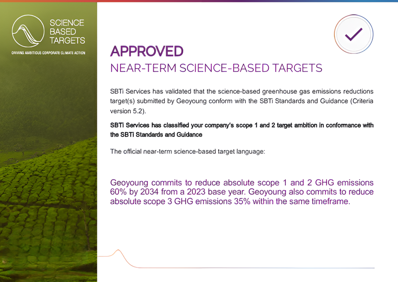 ▲ SBTi로부터 지오영의 온실가스 감축 목표 승인이 확정된 인증 자료(이미지=지오영) |