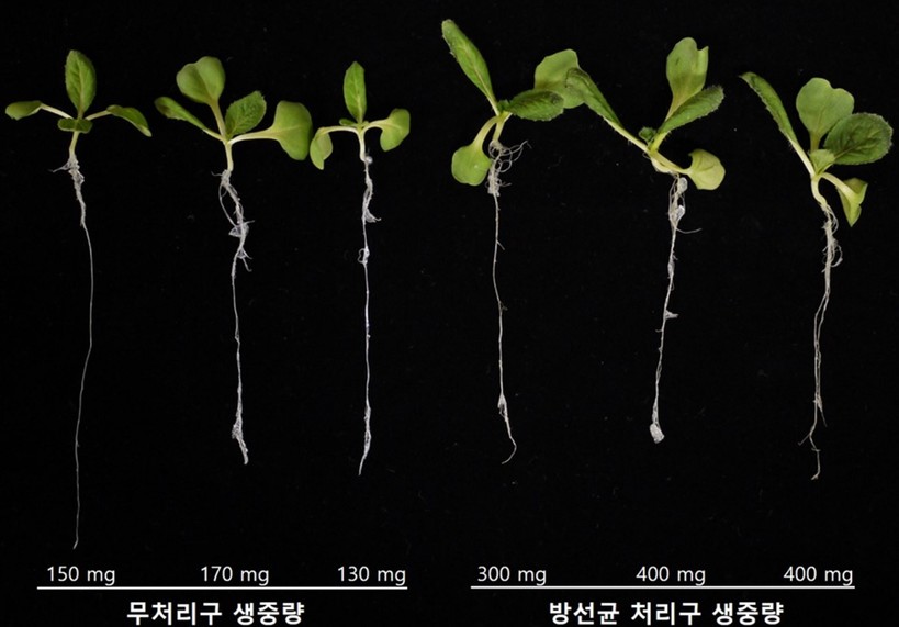 | ▲ 스트렙토마이세스 뮤리누스 JS029의 식물 생장 촉진 효능. (사진=환경부) |