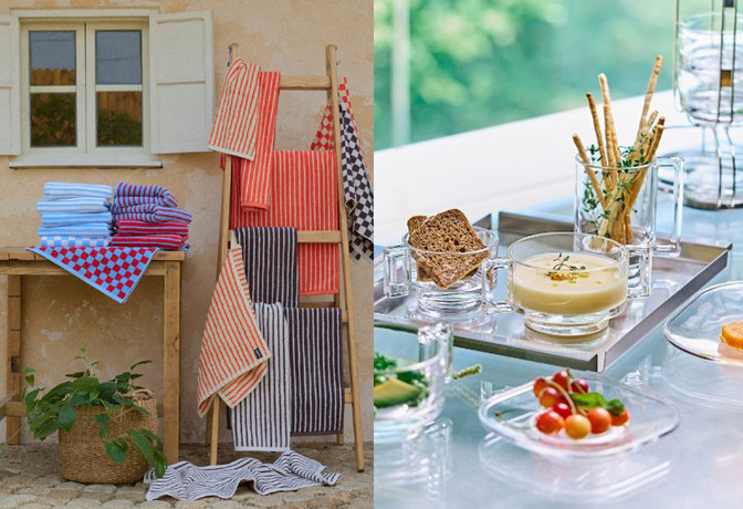 | ▲ (순서대로) 앳센셜 체크스트라이프 선염타월, 아르노글래스 4인 세트(사진=CJ온스타일) |