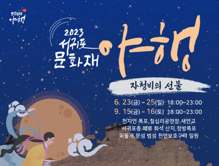 [일요주간 = 소정현 기자] 서귀포 야간의 대표적인 문화재 축제인 서귀포문화재야행 행사가 제주형 K-문화재 콘텐츠로 개발되어 오는 23일부터 25일까지 3일간 서귀포항과 새연교, 문섬과 범섬 보호구역 일원에서 다채롭게 펼쳐진다.