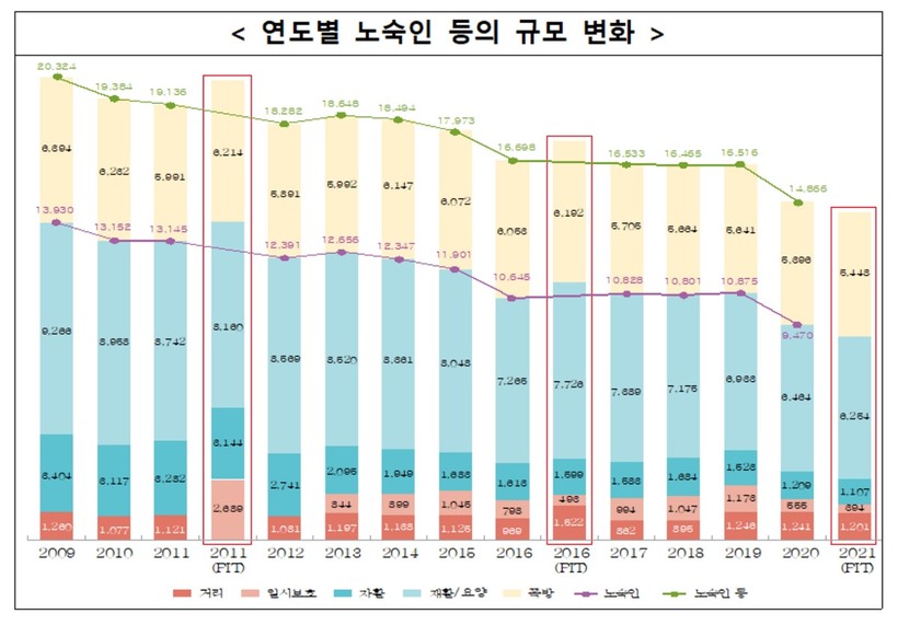 | ▲연도별 노숙인 등의 규모 변화. (사진=보건복지부) |