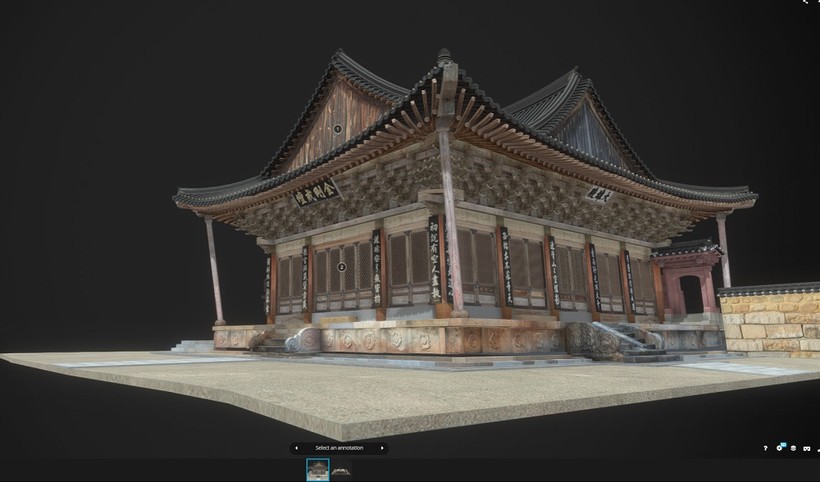 한국의 산지 승원 통도사는 3D로 대웅전과 금강계단을 감상하고 360도 VR로 통도사 전체를 꼼꼼하게 둘러볼 수 있다.