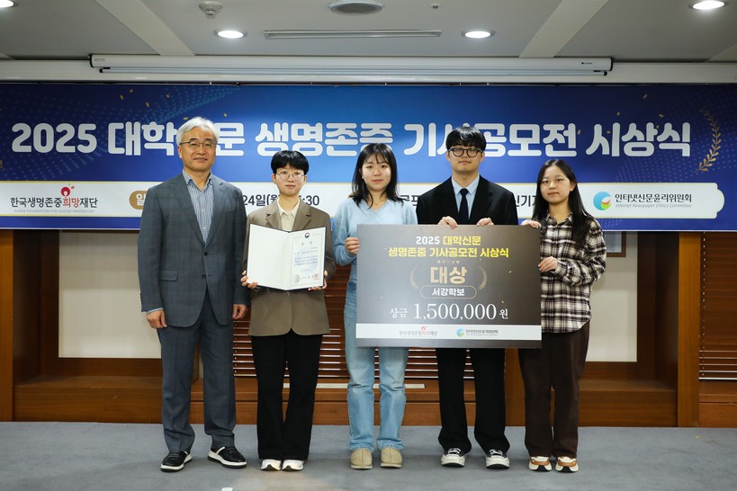 인터넷신문윤리위원회(위원장 이재진)는 24일 프레스센터에서 '2025 대학신문 생명존중 기사공모전' 시상식을 열었다고 밝혔다. 이번 공모전은 대학신문 기자들이 청년세대의 관점에서 생명존중 및 자살예방 관련 이슈를 취재하고 보도할 수 있도록 지원하기 위해 마련됐다. 한국생명존중희망재단이 주최하고 인신윤위가 주관했다.