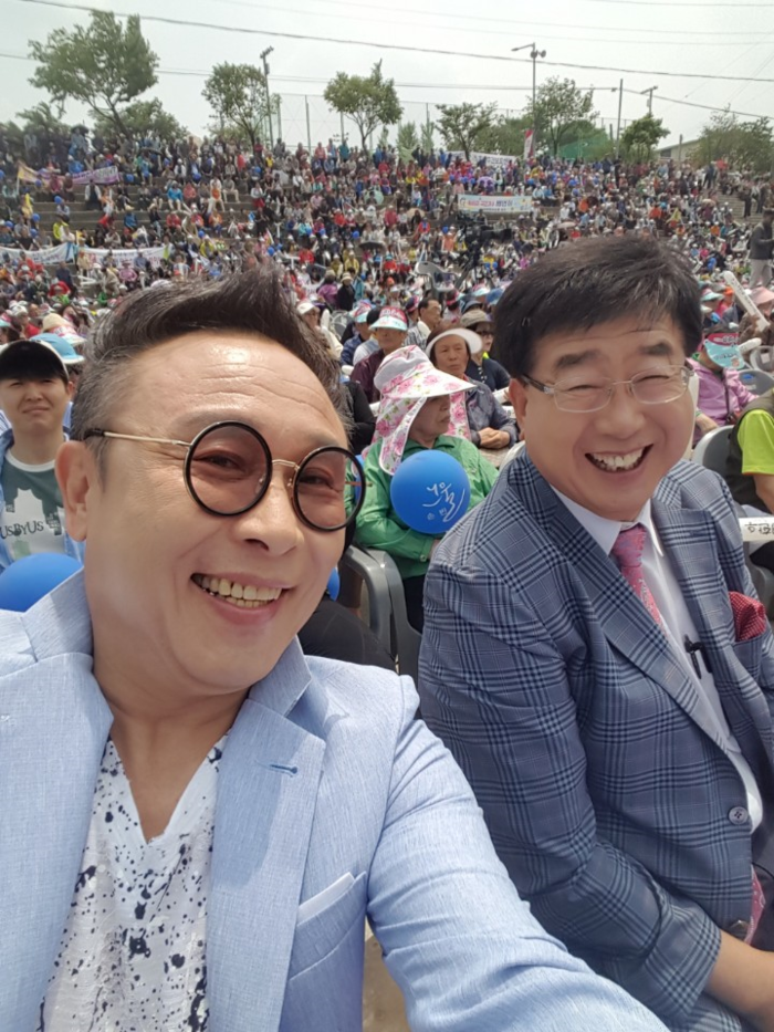 ▲ KBS전국노래자랑 심사하는 중 관중들과 함께한 장면 |