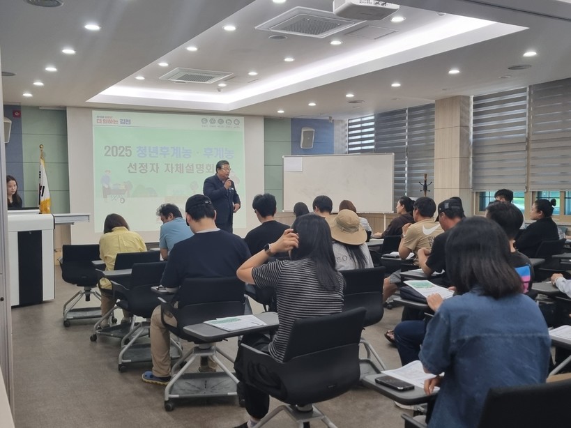 [일요주간=최부건 기자] 김천시(시장 배낙호)는 지난 5월 15일 김천시농업기술센터 소강의실에서 「2025년 청년후계농·후계농 자체 설명회」를 개최하여 올해 새롭게 선정된 청년후계농 25명과 후계농 14명을 대상으로 사업 추진을 위한 방향과 주요 변경 사항을 전달했다.