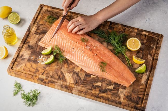 ▲ ‘쿡셀 티크 엔드그레인’ 도마는 음식의 플레이팅으로도 다용도 사용 가능하다.