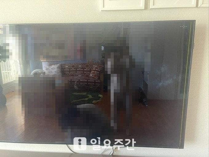 ▲제보자 B 씨가 삼성전자 서비스센터에 수리를 맡겼다가 액정이 파손된 84인치 모니터.(사진=제보자 제공) |