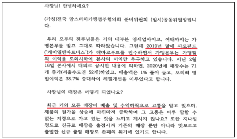 | ▲ 2021년 3월 2일 가맹점사업자단체 구성 안내 및 참여 독려 우편물(발췌).(자료=공정위 제공) |