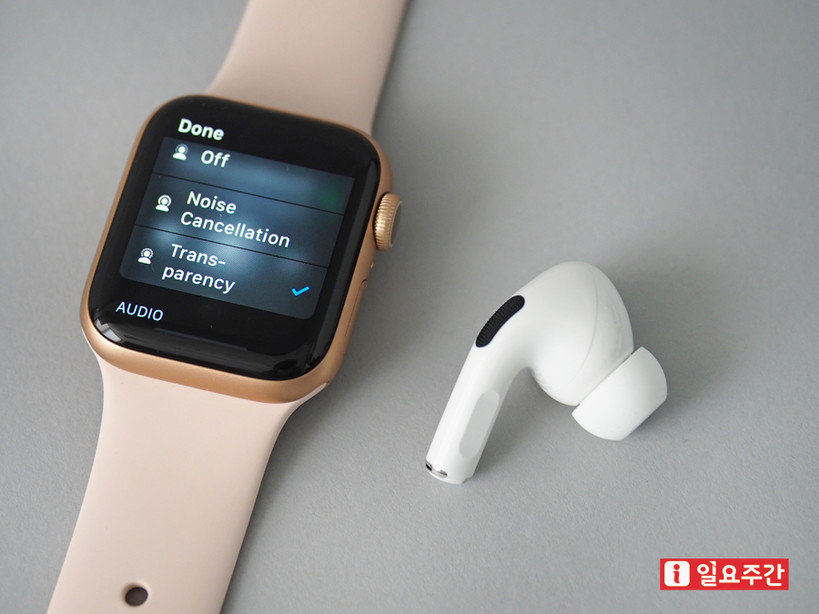 ▲노이즈 캔슬링과 주변음 차단, 애플 워치를 통해 손쉽게 제어 (사진=지혜수 기자)