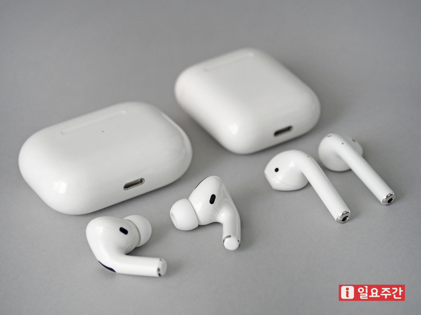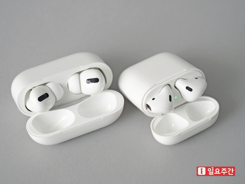 ▲1세대 에어팟과 애플 에어팟 프로 비교샷 (사진=지혜수 기자)