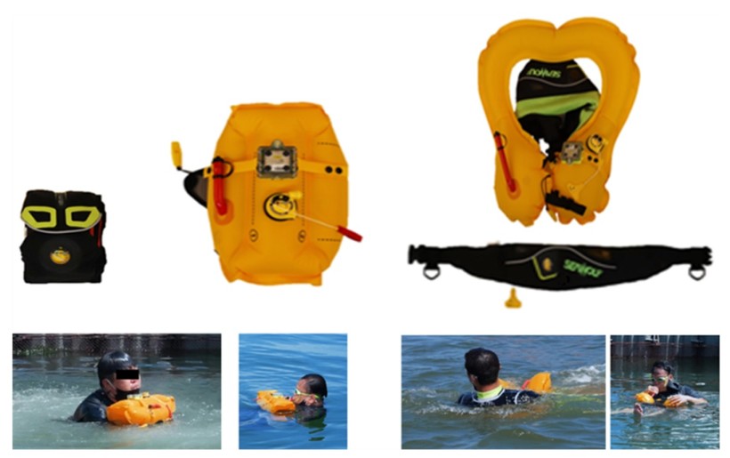 손목과 허리에 착용하는 밴드 2가지 형태로 개발됐다. 조난 시 자동으로 팽창하고, 오작동 시에는 직접 입으로 공기를 불어 넣을 수 있어 수동으로도 작동할 수 있다.