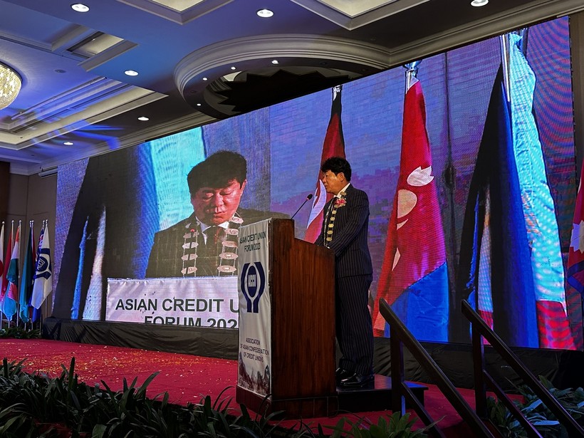 ▲ 네팔 카트만두에서 개최된 ‘2023 아시아신협 포럼 및 아시아신협연합회 연차총회’에서 김윤식 신협중앙회장 겸 아시아신협연합회장이 연설하고 있다.(사진=신협 제공) |