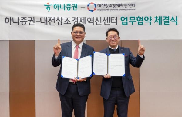 | ▲하나증권은 대전창조경제혁신센터와 스타트업 생태계 활성화를 위한 업무협약을 체결했다.(사진=하나증권 제공) |